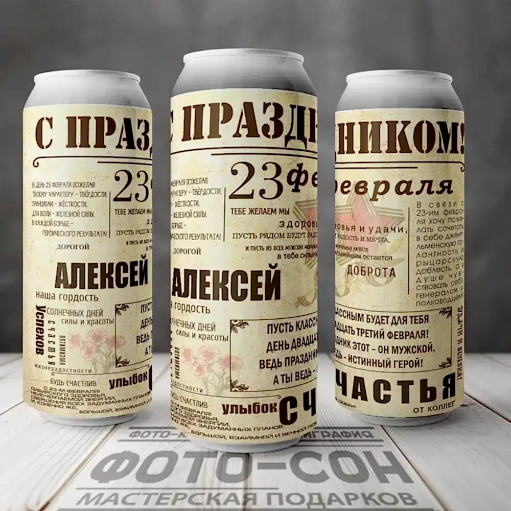 Именная PinUp на 23 Февраля на банку пива 0.45л.