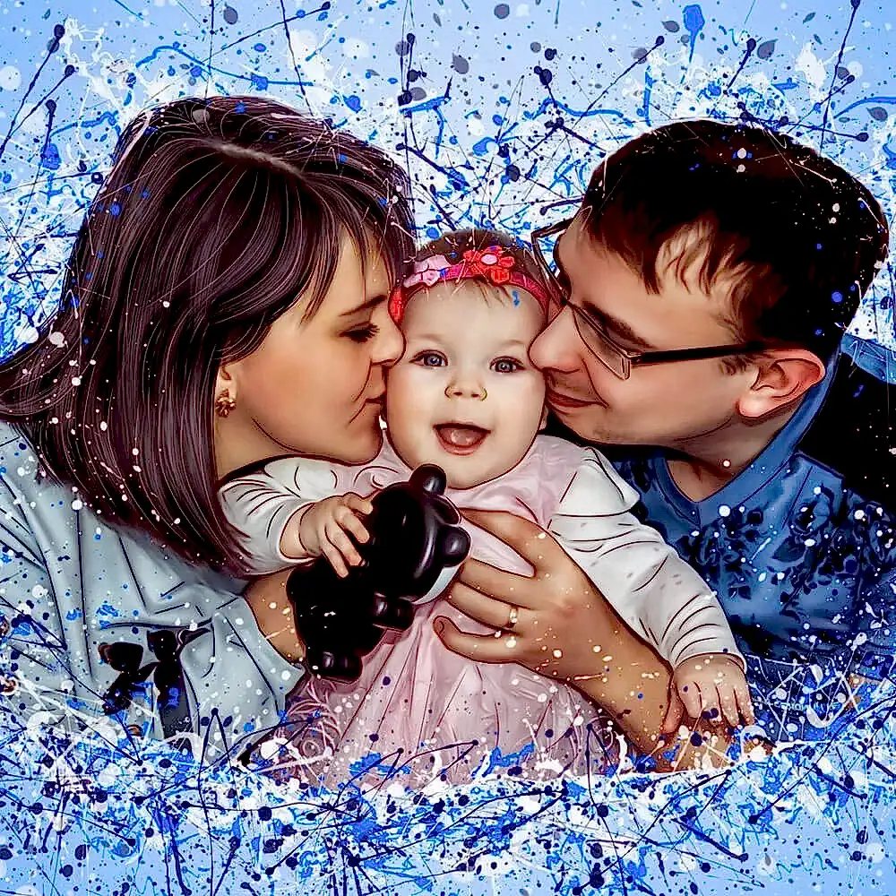Оформить заказПортрет в стиле Дриам-арт - яркий PinUp для семьи из нескольких человек.