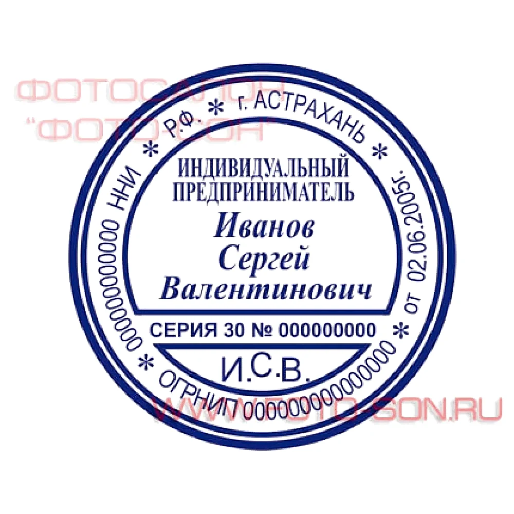 Печать индивидуального предпринимателя Шаблон №6.