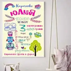 Оформить заказМетрики на фотобумаге или холсте - не только приятный подарок для PinUp новорожденного, но и украшение для детской комнаты.